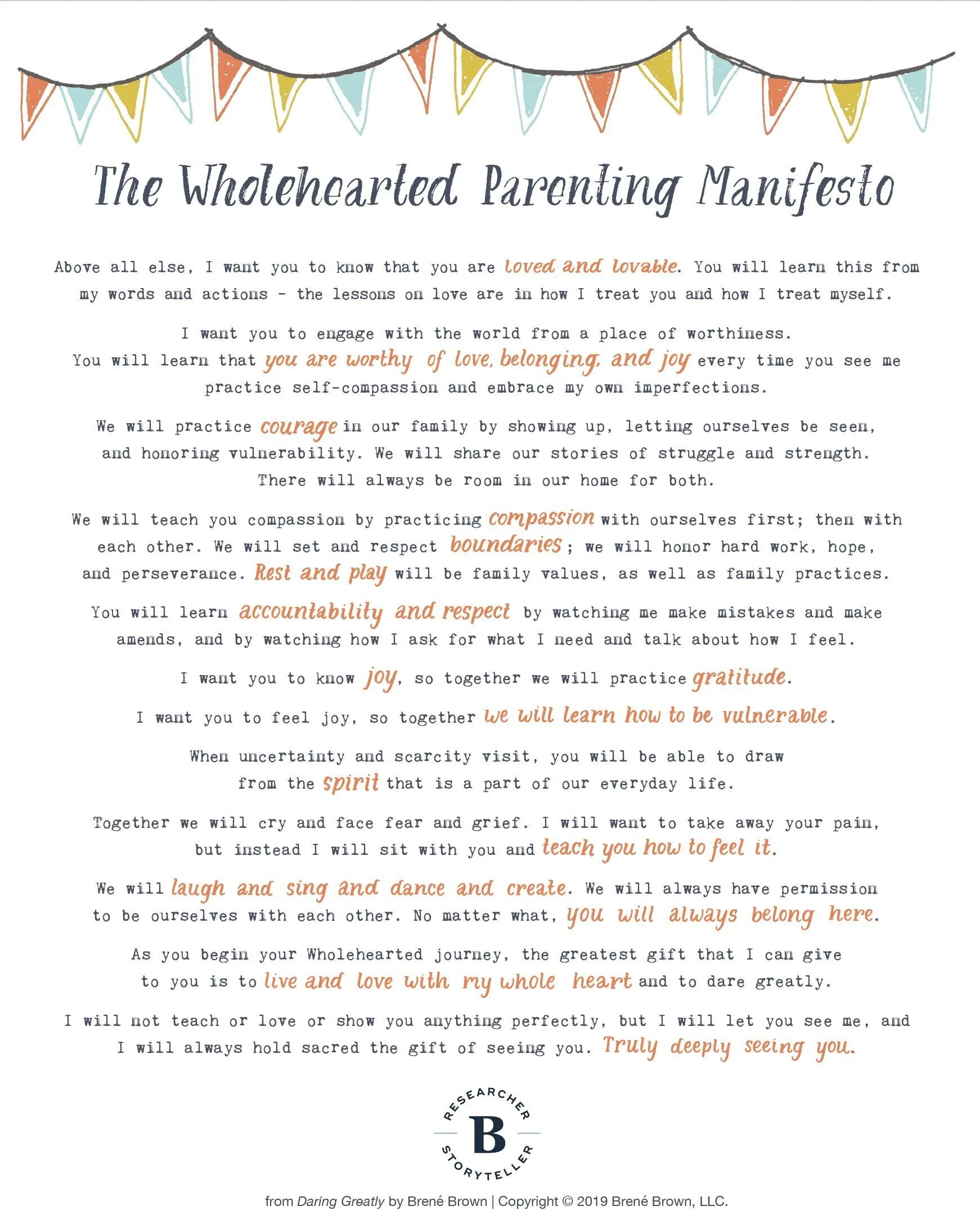 Here is a family manifesto that I love. It’s written by Brene Brown.